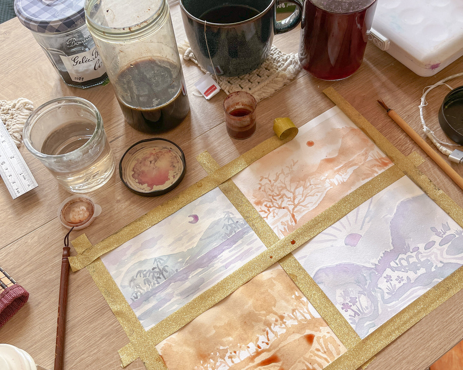 Venez créer plus de 8 teintes à l'aquarelle végétale avec l'artiste permacultrice et auteure du livre "Créer votre peinture végétale". Puis, créer plusieurs oeuvres avec les couleurs naturelles. Vous remportez avec vous les couleurs et les créations.