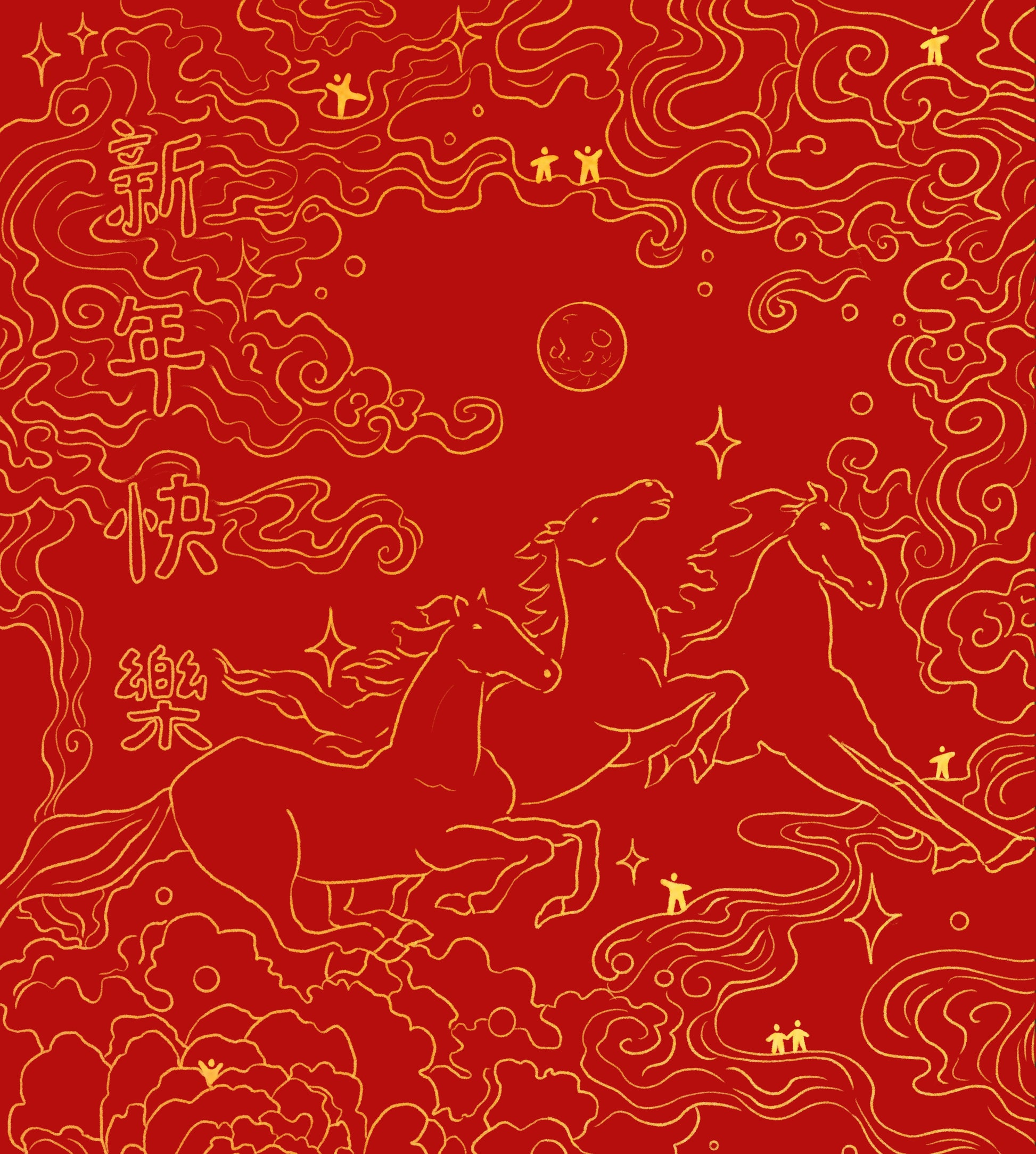 Cheval pour le Nouvel an chinois - Coloriage